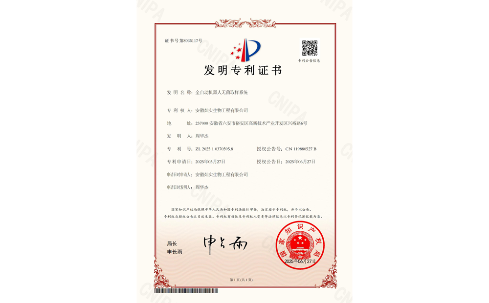 一種血漿袋自動破袋碎冰設(shè)備-發(fā)明專利證書